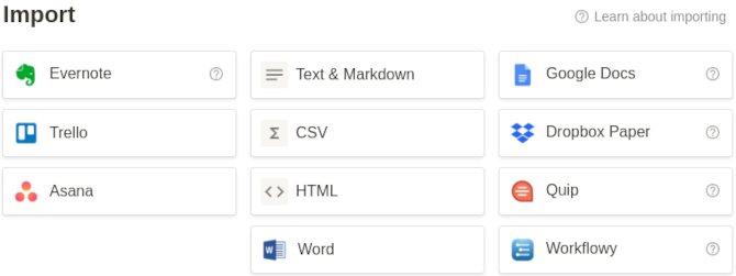 این برنامه می تواند اطلاعات موردنیاز را از منابع زیادی وارد کند و اطلاعات موجود را نیز می تواند به صورت HTML ، PDF یا Markdown صادر کند.