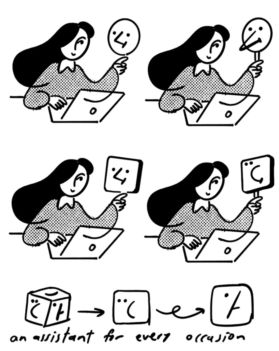 همونطور که مورادوف، که در واقع برای نیویورکر هم طراحی کرده و مسئول آواتارهای سیاه و سفید Notion هست، به این ایده فکر میکرد، به آزمایشهای اولیه مثل کلیپی و مایکروسافت باب نگاه کرد. کلیپی هم دوستداشتنی بود و هم جلوتر از زمان خودش، ولی خیلی حواسپرت کننده بود.